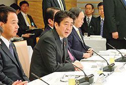 安倍首相は配偶者控除の見直しを指示した(3月19日の経済財政諮問会議・産業競争力会議合同会議)。(時事通信フォト=写真)