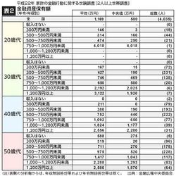 表2:平成22年 家計の金融行動に関する世論調査[2人以上世帯調査]金融資産保有額(年令・年収別)