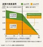 「ただし、図1のように60歳から75歳までを『使いながら運用する時代』、75歳から95歳までを『厳格に使う時代』と位置付けた場合、60歳時点で6000万円を用意しなくてもよくなります。60歳から75歳まで年平均3%の運用ができれば、月額15万円程度の引き出しなら60歳時点で4224万円、月額10万円程度の引き出しなら60歳時点で2816万円を用意すればいいのです。注意点は、60歳から75歳までの『使いながら運用する時代』は、『毎月15万円』というような定額引き出しではなく、『その時点の運用額の4%』というような定率引き出しにして生活費の調整をすること。定額引き出しの場合、当初の運用が悪かった場合、元本が減ってしまって予定どおり運用できなくなる可能性があるのです」(野尻氏)