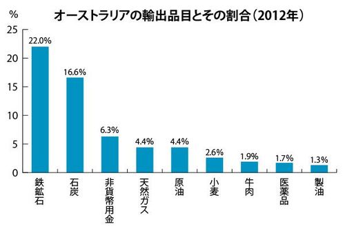 資源輸出の場合、気になるのが資源価格の変動による影響だ。もしオーストラリアが石油産油国のように、単一の資源しかないのであれば、資源価格や貿易相手国の情勢によって大きなリスク要因を抱え込むことになる。