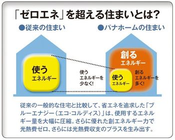 パナホームの独自試算によると、BlueEnergy仕様の「エコ・コルディス」(写真)の場合、エネルギー自給率300%も十分達成可能だ。未来を先取りし、なおかつ超える性能を備えた住宅。「エコで快適なくらし」は、BlueEnergyが象徴するように、新たなフェーズに突入した。