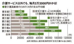 一口に介護費用といっても、介護保険が適用され1割の自己負担で済むサービスの利用額だけではありません。デイサービスの食事代やおむつ代、ショートステイの部屋代などさまざまな費用がかかります。「ヘルパーさんが来るからみすぼらしい格好は……」とパジャマを新調することもあるでしょう。介護が始まると、思った以上に出費がかさむものです。