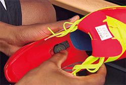 シューズの中にセンサを収納するアディダス社の商品(アディダス社HPより)。