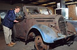 「1936年から日本で生産が始まった世界初の量産四輪駆動乗用車で、幻といわれていた初期型をフルレストアする計画です。外装は錆ついていますが、エンジン回りはしっかりしていて、レストアで走行は可能です。目標金額の1000万円は背伸びしすぎとの声もありましたが、空振りか場外ホームランかで構わないと決心しました。もし空振りだったら、自腹を切る覚悟でした」