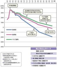 現在58歳、年収手取り600万円の会社員Bさんのケース。1歳年上の妻は専業主婦。子どもは独立している。貯蓄は1500万円あり、退職金は1300万円もらえる。定年退職後は65歳まで年収300万円(月25万円)の嘱託として残ることができる。65歳以降は年金の280万円(月23万円)で生活することになる。Bさん夫婦は老後の生活費を月額25万円と見積もっている。80歳まで毎年100万円かけて16回海外旅行へ行き、自宅のリフォームを2回、総額400万円かけて行い、2人の子どもには結婚時に援助金として200万円ずつ渡すつもりでいる。