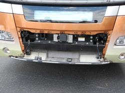 日野のPCSでは、「アイサイト」のようなカメラではなく、ミリ波レーダーを使って障害物を検出している。その 長所は電波なので霧の中や降雨・降雪時においても検出可能で、遠くまで認識できること。一方、短所は障害物が 何かわからず、人を認識できないことだ。