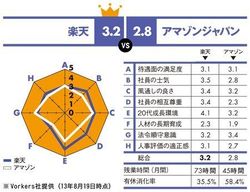 ※各データ(5点満点)および社員クチコミはすべてVorkers社提供(13年8月19日時点)。クチコミの最後の数値は、コメント主が付けた総合点。