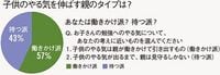 (1)から見ていこう。子供のやる気は親が働きかけて引き出すものと考える人を「働きかけ派」、やる気が出るまで親は見守るしかないと考える人を「待つ派」とした。