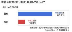 その年収アップの1つの方法として、私が注目しているのは年次有給休暇(以下、有休)の買取の解禁だ。ヤフーが2013年11月に行ったアンケートでは、実に83%が買取に賛成した。ここまで賛成派が多いのならば、規制緩和の1つとして前向きに検討をすべきではなかろうか。そこで、賛否の意見を集めてみた。