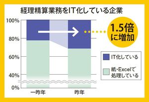 経費精算業務をIT化している企業の割合は1年間で1.5倍に増加