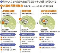 まず、親自身が「朝は楽しい」と感じる必要がある。子供の脳が、「A10神経群」で最初に貼るレッテルをポジティブなものにするためだ。「早起きはつらいが仕方ないから起きなければ」と親自身が思っていたら、その時点で、子供の脳は朝に対してマイナスのレッテルを貼ってしまい、脳はうまく活動しなくなる。