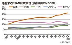 かねてから私は日本が財政破綻に陥る危険性について指摘してきたけれど、もしも自民党の安倍総裁が選挙前におっしゃっていたことを本当に実施するなら、財政破綻は免れるでしょう。ただし、その代わりにハイパーインフレへの道まっしぐらです。その結果、国が抱えている976兆円の借金は紙クズ同然になってしまいます。ハイパーインフレとは、たとえば、極端ですが、タクシー初乗り運賃が9兆円になる場合をイメージしていただければわかりやすいと思います。ドイツでは、1923年1月に250マルクだったパン1個がその年末には3990億マルクになり、給料をもらっても1~2日目にパンを買うと3日目からはお金が尽きてしまうという状況になったのです。