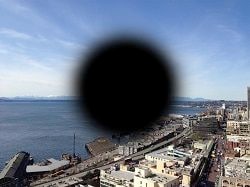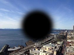ところで加齢黄斑変性はどういうものなのか。この病気は、最初に「ドライ型」から発症します。初期段階では網膜に老廃物が溜まるのですが、自覚症状は現れないか、現れたとしても乏しいです。さらに進行すると視細胞がポツポツと抜け落ちるように損傷していきます。(視細胞はデジタルカメラのCCDに例えるところの画素にあたります。)それがやがては点から面になり、見えないところが視野の中心部から地図状に広がっていっていきます。これが末期の地図状萎縮を伴うドライ型加齢黄斑変性です。