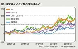 私は仕事柄、海外の投資家に会う機会が多いのだが、いつも彼らに言っているのは、平均的な日本企業などもう存在しないということである。よい会社と悪い会社があるのみ。よい会社には、強い経営者がおり、そうした会社の株価パフォーマンスは明らかにいい。強い経営者は今、変化を求め、グローバル競争に勝とうとする日本企業にとって、必須の条件になりつつあるのだ。
