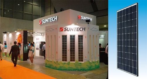 左/「PVJapan2014」のサンテックパワーのブース。多彩な製品を展示し、日本の太陽光発電のあるべき姿を示した。