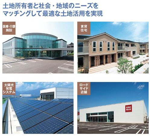 あらゆる物件に対応できるのが、幅広いフィールドで事業活動を展開する大和ハウス工業の特徴。土地所有者の希望や周辺環境、立地条件などを総合的に検証し、中長期の視点から最適な土地活用を実現する。