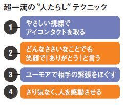 「実は、ファーストクラスのお客様には相手をリラックスさせる不思議な力が。みなさんやさしい笑顔で相手の目を見て話をされ、しかもユーモアあふれる話で自ずと緊張もほぐれてしまいます」