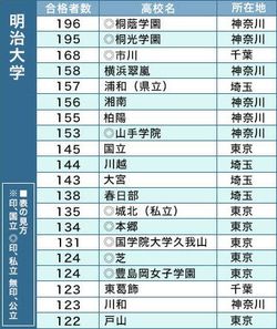 評価が高い明治大だが、今年のランキングはどうだったのだろうか。トップは昨年の2位から巻き返した桐蔭学園で196人。昨年1位だった桐光学園は195人の1人差で2位となった。両校とも神奈川の中高一貫校で、併学というスタイルをとっている。併学とは聞き慣れないが、共学なのだが男子と女子が分かれて学び、学校行事、部活動、生徒会活動などは男女ともに行うという学校だ。