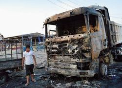 イスラム国が関与したと見られる爆弾テロで破壊された車両(イラク)。(ロイター/AFLO=写真)