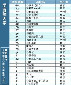その学習院大の合格者高校別ランキングでは、1都3県(埼玉、千葉、東京、神奈川)の合格者がベスト20を占めた。全合格者に占める1都3県の割合でも10年前の75.4%から、今年は83.5%に上がっている。首都圏の大手大学で8割を超えているのは上智大と学習院大の2校だけだ。