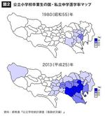 1980年と2013年の国・私立中学進学率地図を地図にしてみましょう(図2)。この30年における、東京の中学受験率地図の変化です。