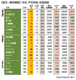 【電気・精密機器】年収、平均年齢、従業員数