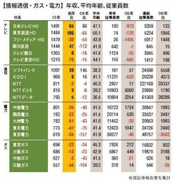 【情報通信・ガス・電力】年収、平均年齢、従業員数