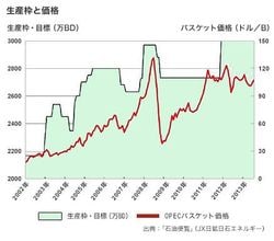 なお、OPECバスケット価格は2014年半ばまでは105ドル前後で推移したが、その後急落し、10月平均85.06ドル、11月平均75.57ドル、12月12日(金)には58.65ドルまで下落している。OPEC加盟国の代表原油平均値であるこのバスケット価格は、ブレントとWTIの中間で動いているようだ。