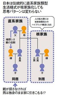 日本は伝統的に直系家族類型。生活様式が核家族化しても思考パターンは変わらない