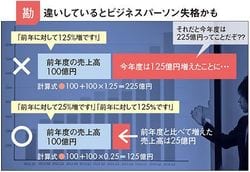 要するに「どれだけ増加したか」と「単なる比較」の表現方法を混同しているから、くだんの若手ビジネスパーソンのような発言が生まれてしまうのだ。私はさまざまな従業員研修でビジネスパーソンと会話をするが、この単純な「言い間違い」をする人が年輩のビジネスパーソンでも意外と多いことに驚いている。