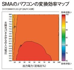 こう語るのは、同社の日本法人であるSMAジャパンのテクニカルダイレクターを務める川上勝史氏だ。SMAのパワコンは、入力電力の多少を問わず高い変換効率を安定して維持する(図参照)。また運転時の冷却装置も不要で余分な電力を使うこともなく、優れた変換効率を最大限に生かすことが可能。実際、複数のパワコンを扱う施工業者からは、「同じ太陽光パネルで、これだけ発電量が変わるとは」などと驚きの声が寄せられているという。