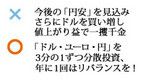 いくら「円高」でも、外貨で巨利を得ようと思わないほうがいい。それぞれ値動きの異なる通貨を持つことは、長期的に安定した利益を生む分散投資の一翼と考えるべきだ。ただ、今後の日本の資源不足や人口減による国力低下を考えると、将来的には再び円安になる可能性も高い。為替差益によるインフレヘッジ手段としても有効な投資対象といえるだろう。