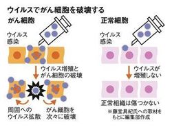 問題は、病気を起こす力を落とすと、一般にがん細胞を殺す力も落ちてしまうことだ。G47Δは、3つめの遺伝子組み換えを緻密に設計し、格段に安全にした一方で、がん細胞を殺す力も向上させた。つまり正常細胞とがん細胞でのウイルスの増え方の差が大幅に開いた。そのため、副作用を出さずにより多い量のウイルスを投与できる。