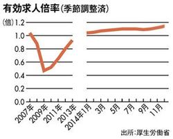 2014年12月の有効求人倍率は、1.15倍。14年に入り安定した推移を見せている。