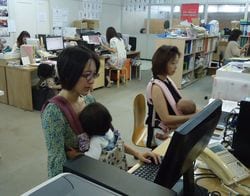 本社だけでなく、直営店でも従業員は赤ちゃんを抱っこしたまま接客する。そのため「お店の人なの!?」と驚かれるという。顧客も同じ母親なので、授乳や子育ての悩みを聞いたり、情報交換するなど、お互いに安心でき、働く喜びになっている。