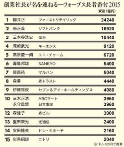 創業社長地方が名を連ねる―フォーブス長者番付2015