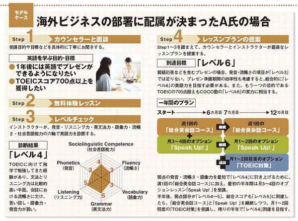 まずは、進化したCOCO塾の体験レッスンに参加して、英語力診断をしてもらおう。自分の英語スキルの弱点を客観的に知り、あなたにとって最適なプランが組まれたレッスンで「対話力」を磨けば、世界との距離は今まで以上に縮まりそうだ。