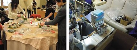 左/ハートモクラブのイベント。フラワーアレンジメントなどの講座には、毎回、大勢が参加する。右/最近、依頼の多い遺品整理。遺品整理士の資格を持つ社員が、心を込めてお手伝いする。