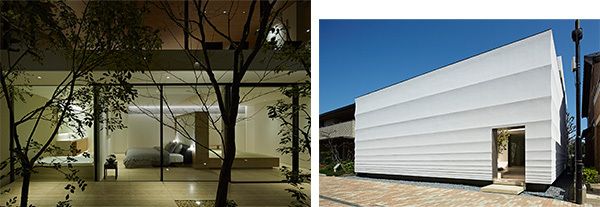 左/外壁側から見た1階。和室、寝室、浴室とプライベート空間に。 右/左官職人・久住有生氏による砂紋をイメージした外壁。