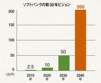2010年6月25日の株主総会で、僕は新30年ビジョンを発表しました。時価総額を現在の約100倍の200兆円にする。同時に、資本などで提携関係にある企業を、現在の800社から5000社に増やす。