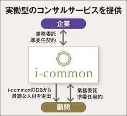 例えば、営業販路を開拓したいが社内リソースは限られる。専門性の高い人材を採用したり、コンサル会社に頼ったりする余裕もない──。そんな悩みに具体的な「答え」を提示するのが、インテリジェンスの「i-common(アイコモン)サービス」だ。「課題の発掘から実行、解決までを支援します」。カンパニー社長の鏑木陽二朗氏が、仕組みと特長を説明する。