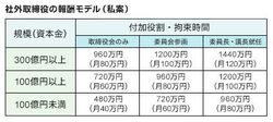 表は、企業規模(資本金)と付加役割の大きさで考えてみた、独立取締役の役員報酬モデルです。