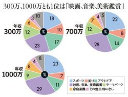 年収300万円も1000万円も趣味の割合は大きく変わらないという結果に。どの層でも映画、音楽、美術鑑賞のレジャーを楽しむ人がもっとも多かった。最近では、栽培した作物を食べられてコスパが高い家庭菜園も人気だ。