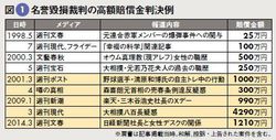 図1:名誉毀損裁判の高額賠償金判決例