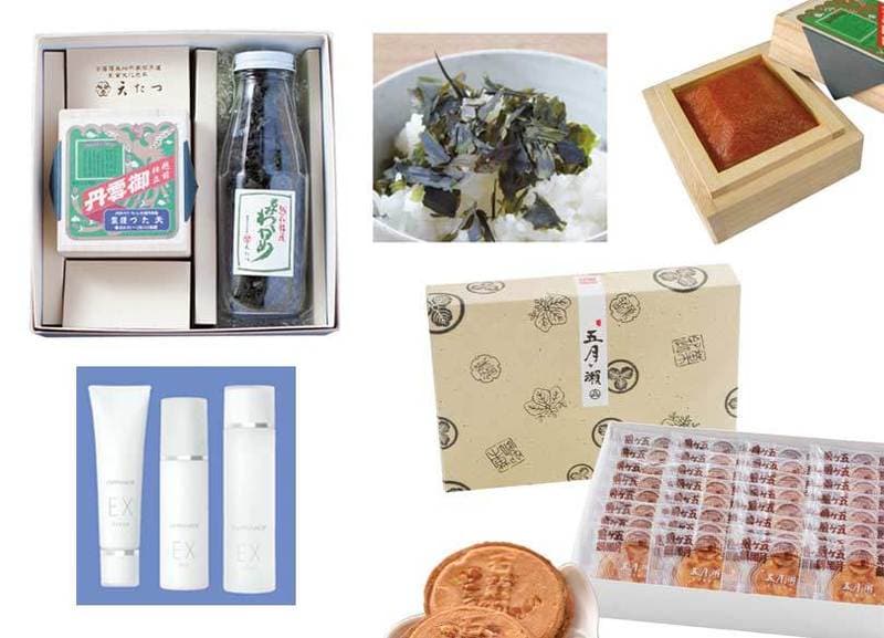 「天たつ」は旧福井藩主松平家御用達の老舗で、「汐うに(塩雲丹)」が看板商品。江戸時代から日本三大珍味といわれた塩雲丹は、バフンウニの卵巣に塩をふり、水分を抜いて凝縮させ、ペースト状にしたもの。100g作るのに、100個以上のウニを使う、とても貴重な品です。濃厚な磯の香りと奥行きの深い旨味で、お酒にもご飯にも合います。もう一品の「天然もみわかめ」は、毎年4月下旬から5月初旬にしかとれない新物わかめの一番芽を乾燥させ、手もみしてふりかけにしたものです。天然もみわかめは季節限定商品なので、これがあるときには、汐うにとセットで差し上げます。