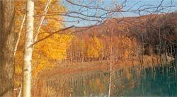 紅葉の美しい青い池。世界的に有名なこの池など美瑛の観光スポットをライトアップし、冬季の観光客を集める提案も。