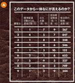 あなたはさっそく、社内にあるデータを探しました。配達に関連するデータA(図参照)は見つかりましたが、それらをどう使って、論理的に何が言えるのかわからなくなってしまいました。