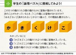 いきなりだが、図の問題にチャレンジしていただきたい。「論理パズル」と呼ばれるもので、実は日本と中国の小学生の間で大きな「論理的思考力の差」があることがわかり、かつて話題となった問題である。中国の小学生はほぼどの学年でも正答率が65%を超えているのに、日本では最高となった小学5年生の57%の値が、なんと中国の小学3年生よりも低かった。