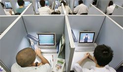 個別のモニターで、1人1人が別個の授業を受ける「東進ハイスクール」。ネットとリアルの組み合わせで進学実績を伸ばしてきた。(共同通信イメージズ=写真)