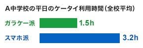 A中学校の場合、平日のケータイ利用時間は全校平均で、